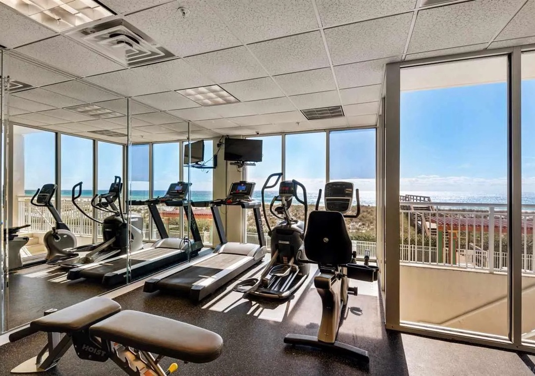 This gated resort has a heated pool & hot tub, private cross-over to the beach, community grills (both gas and charcoal), and a fitness center.