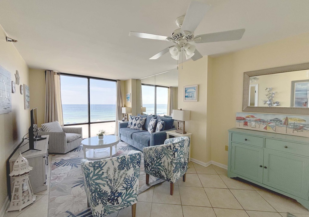 The open floor plan makes you feel like you're sitting right on the beach while inside. A large covered side balcony offers Gulf views and plenty of room to sunbathe or read a book while listening to the surf.