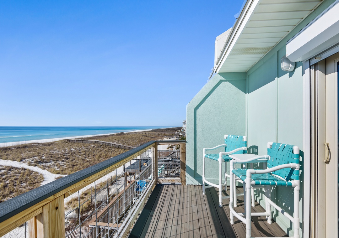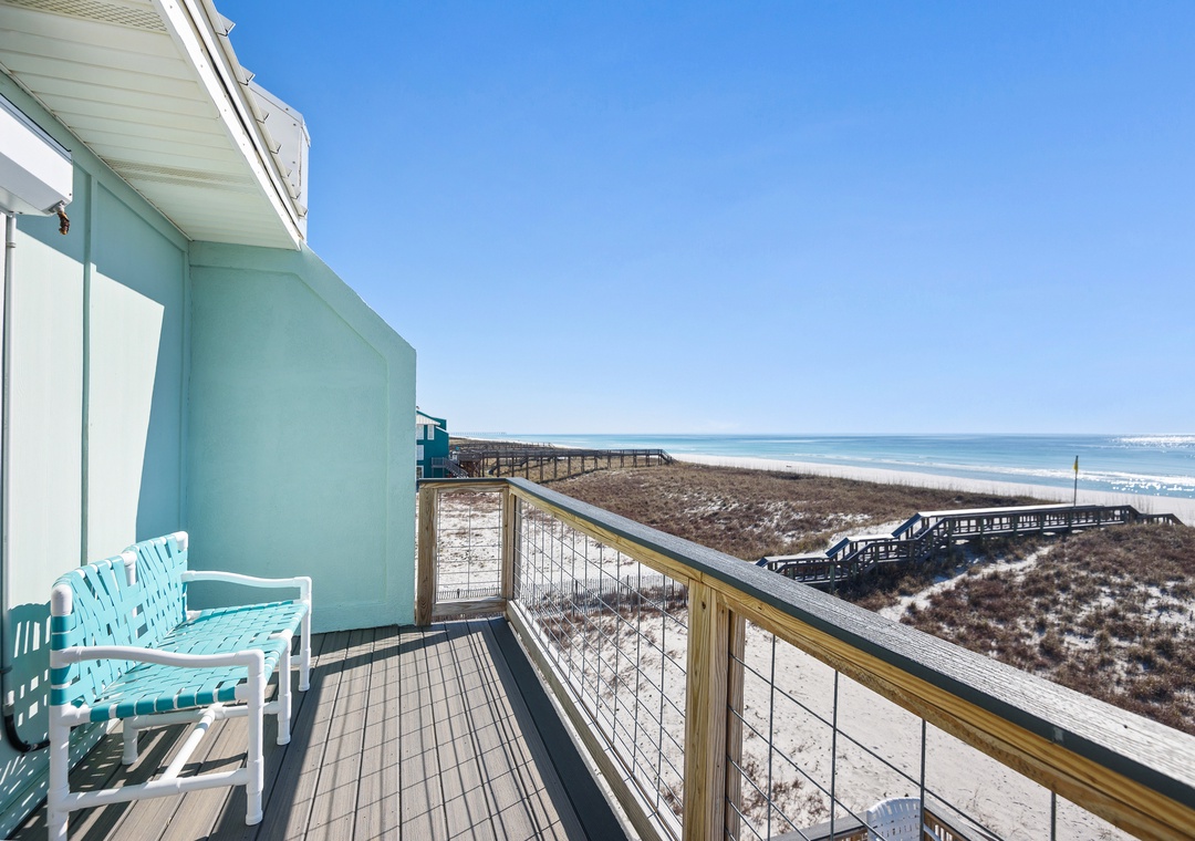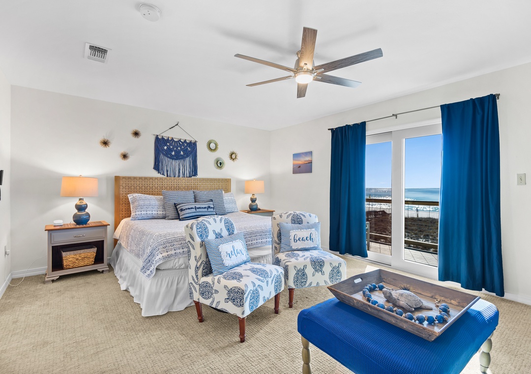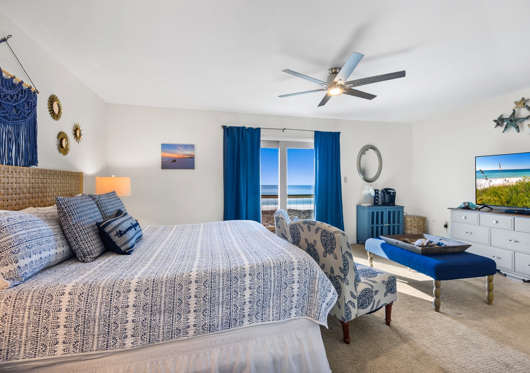 Upstairs you'll find the large king-sized Gulf front primary bedroom with a bathroom featuring a walk-in shower. Open the sliders onto the private deck and greet the day with your first cup or end the day with your last one!