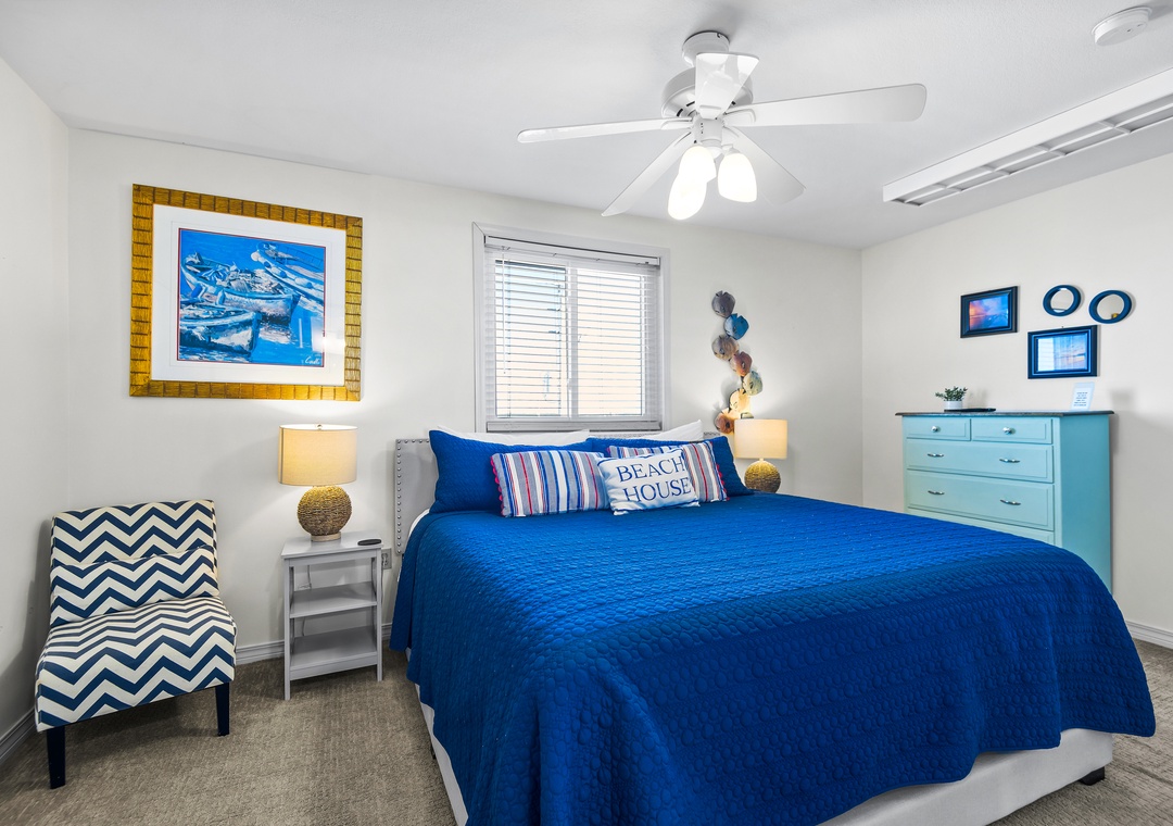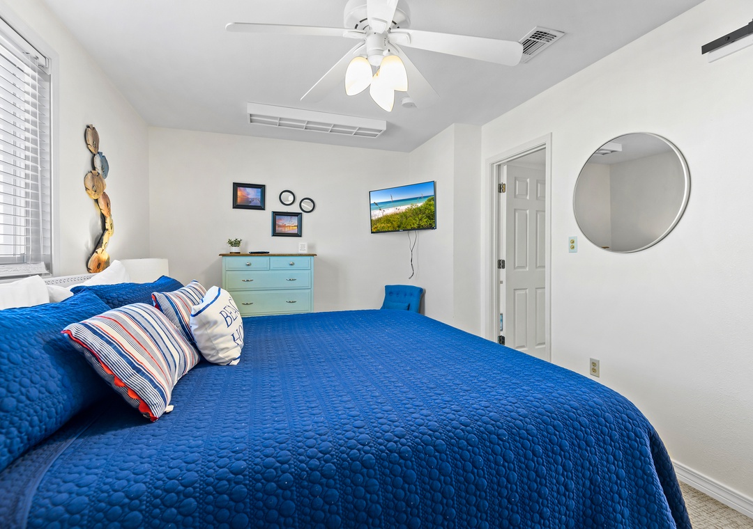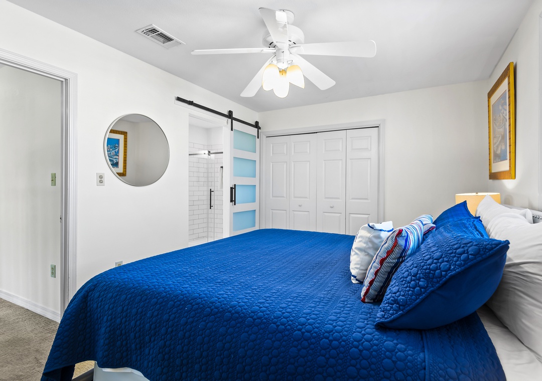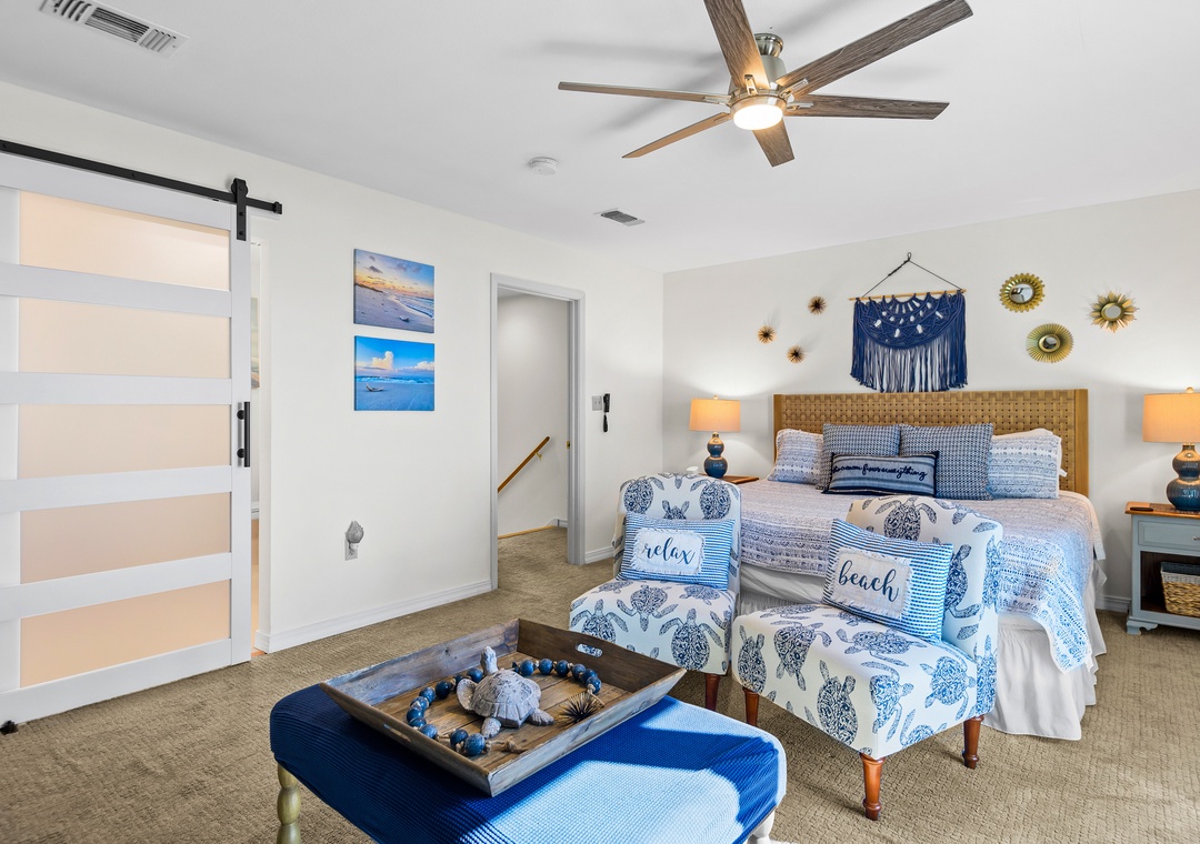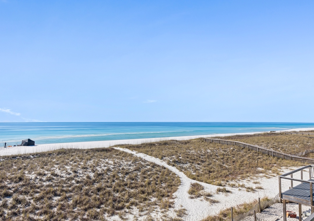 Upstairs you'll find the large king-sized Gulf front primary bedroom with a bathroom featuring a walk-in shower. Open the sliders onto the private deck and greet the day with your first cup or end the day with your last one!