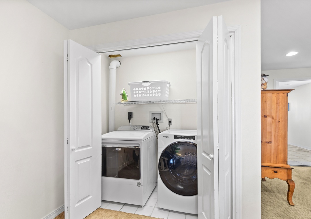 There is a garage for storing your "stuff", parking for 4 directly in front of the home and a full sized laundry for your convenience.
