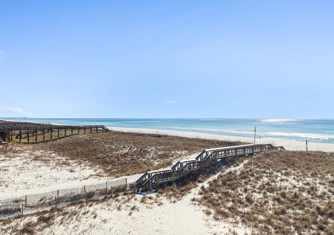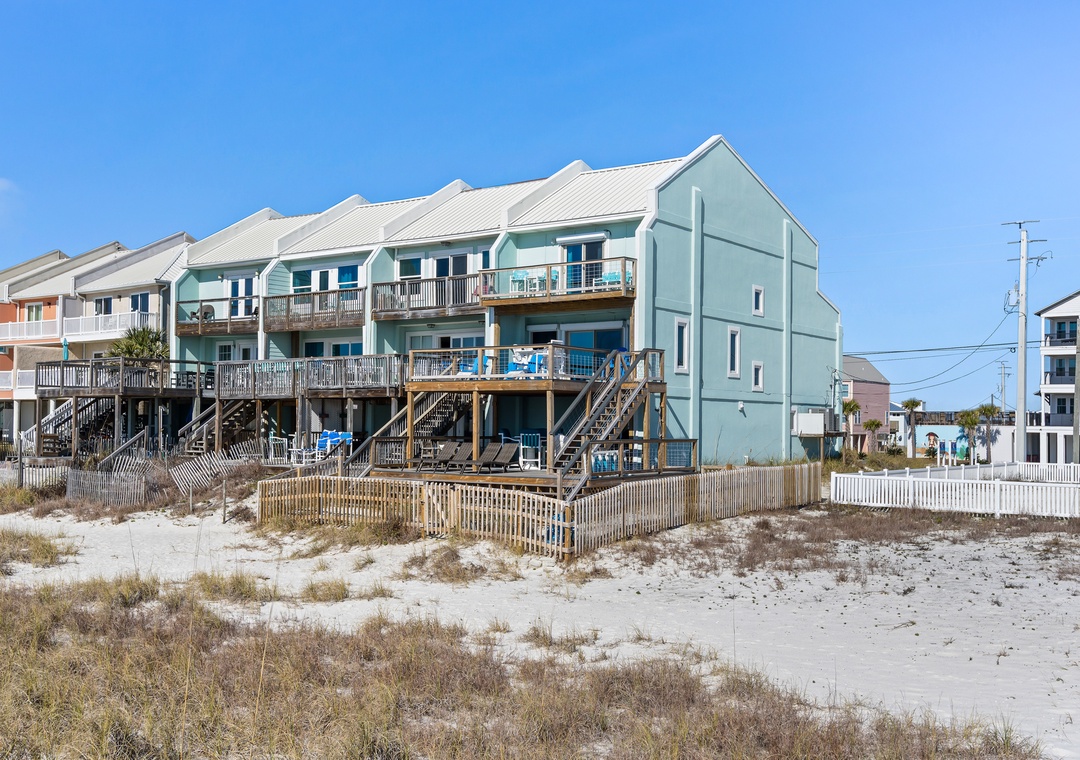 The white sandy beach surrounds this beautiful end unit townhome featuring 4 bedrooms and 4 full bathrooms.