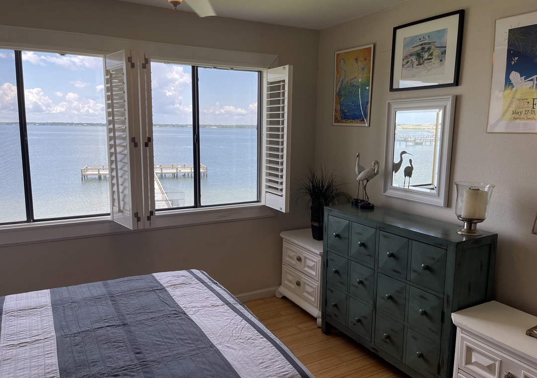 My daughter and I really enjoyed Treasure by the Sound. The view of the bay is great, and I read outside on the dock for a while each morning. The kitchen is well-equipped, and has all you need to make simple meals. The wi-fi was great, and TV also easy to use. Jeanette was very easy to work with and checked in on us just after we arrived. This is about 1 mile from a section of the Gulf Islands National Seashore, and about 2-3 miles from Navarre Beach Pier and the Causeway to the mainland. Id' love to return someday and see other parts of the National Seashore!- Reviewed On: 5/24/2016