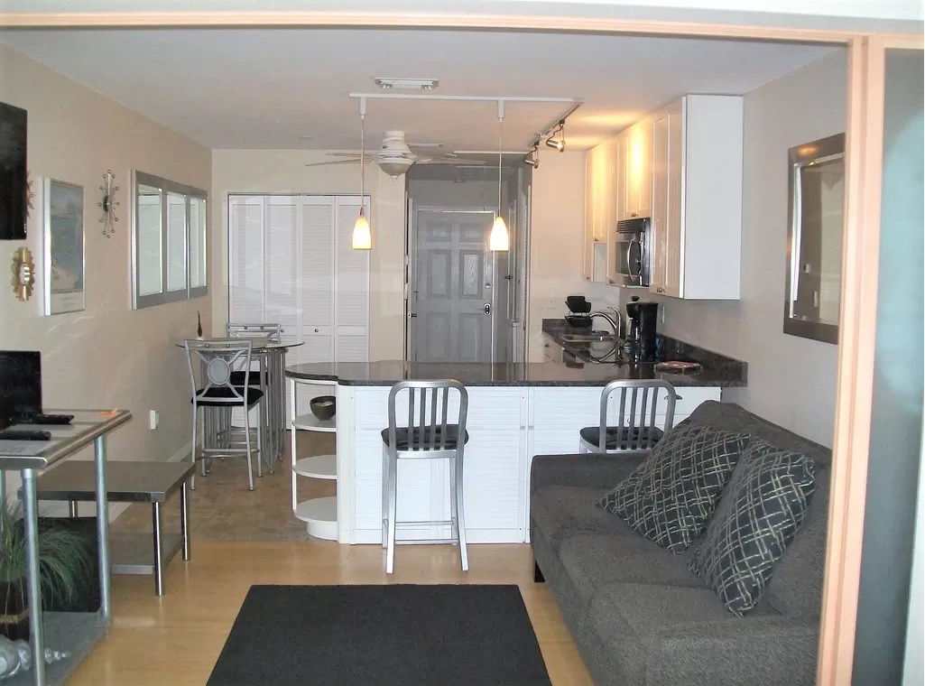 This property was perfect for our weekend getaway. The studio was modern, clean, and neatly decorated. The kitchen was large and allowed both of us to move around without climbing over each other. The sitting area was comfy and the bedroom area was roomy as well. The hosts were extremely easy to work with and were very accommodating to our late arrival. We also found the other condo residents to be welcoming and friendly. We would definitely stay here again!- Reviewed On: 4/18/2017
