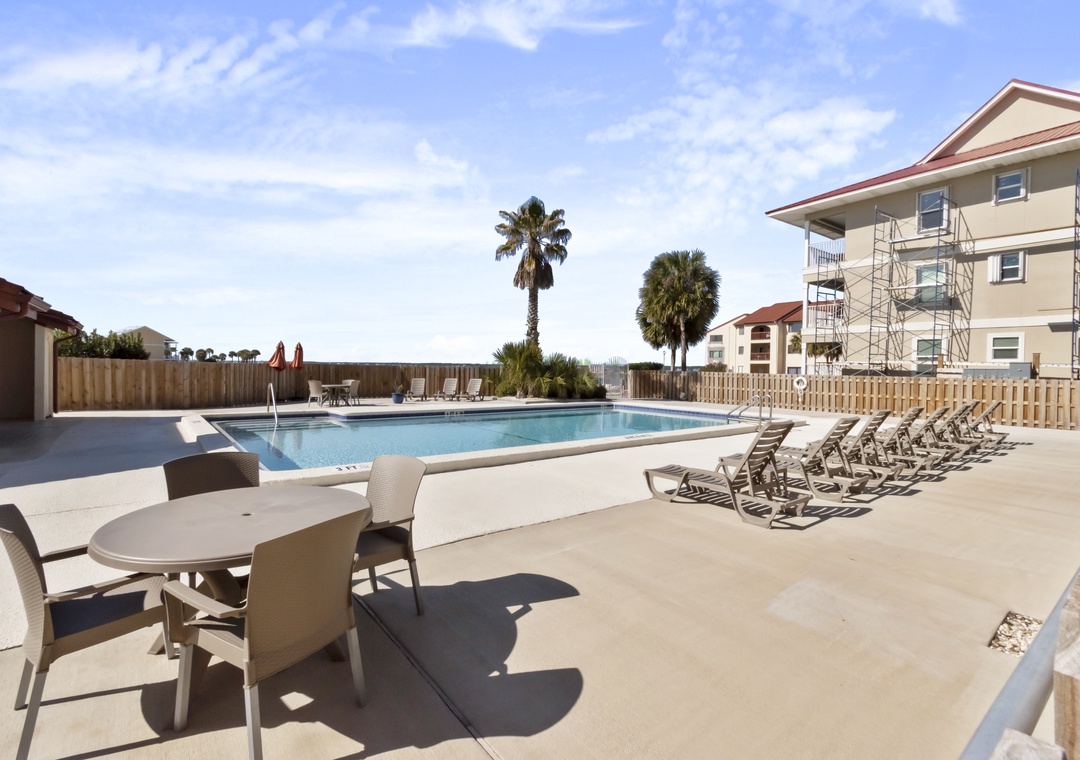 Cool off after a long beach day in the beautiful pool, then make your way on out to the private pier for a magnificent sunset.